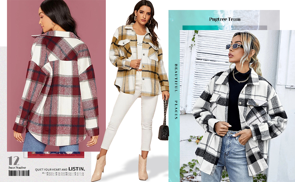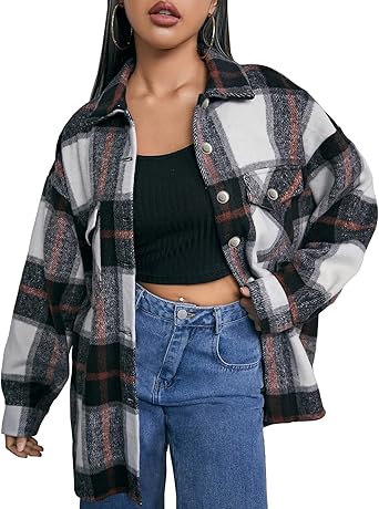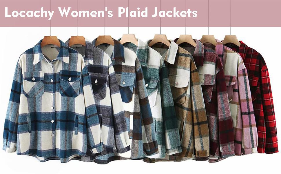 Locachy Women S Casual Plaid Button Down Wool Blend Long Sleeve Jackets Outerwear At Amazon Women S Clothing Store