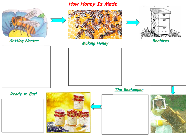 They collect a sugary juice called nectar from the blossom by sucking it. We will draw simple pictures or diagrams to illustrate the sequence. We will draw simple pictures or diagrams to illustrate the sequence.